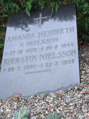Født: 27 dec. 1872 - Eringboda, , Blekinge, Sverige Dåb: Død: 22 sep. 1944 - Nørre Ørslev, Nørre Ørslev, Maribo-650, Danmark Begravet: 25 sep. 1944 - Nørre Ørslev Kirkegård, Nr. Ørslev, Maribo-650, Danmark Dødsårsag: