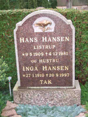 Født: 9 maj 1909 - Listrup, Nørre Ørslev, Maribo-650, Danmark Dåb: 23 jul. 1909 - Nr. Ørslev Kirke, Nørre Ørslev, Maribo, Danmark Død: 4 dec. 1981 - Listrup, Nørre Ørslev, Maribo-650, Danmark Begravet: i Nr. Ørslev Kirkegård, Nørre Ørslev, Maribo, Danmark Dødsårsag:Begivenheder