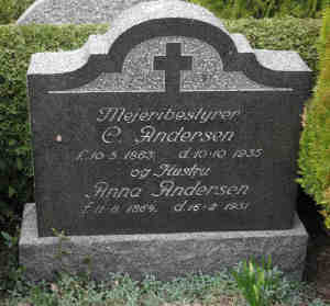 fhv. mejeribest i Horreby født i Tunnerup i 10 maj 1863 som søn af smed Niels Vilhelm Andersen og hstr Kirsten Frederiksen, gift med Anna Eline Rasmussen, s.f.b. i Horreby